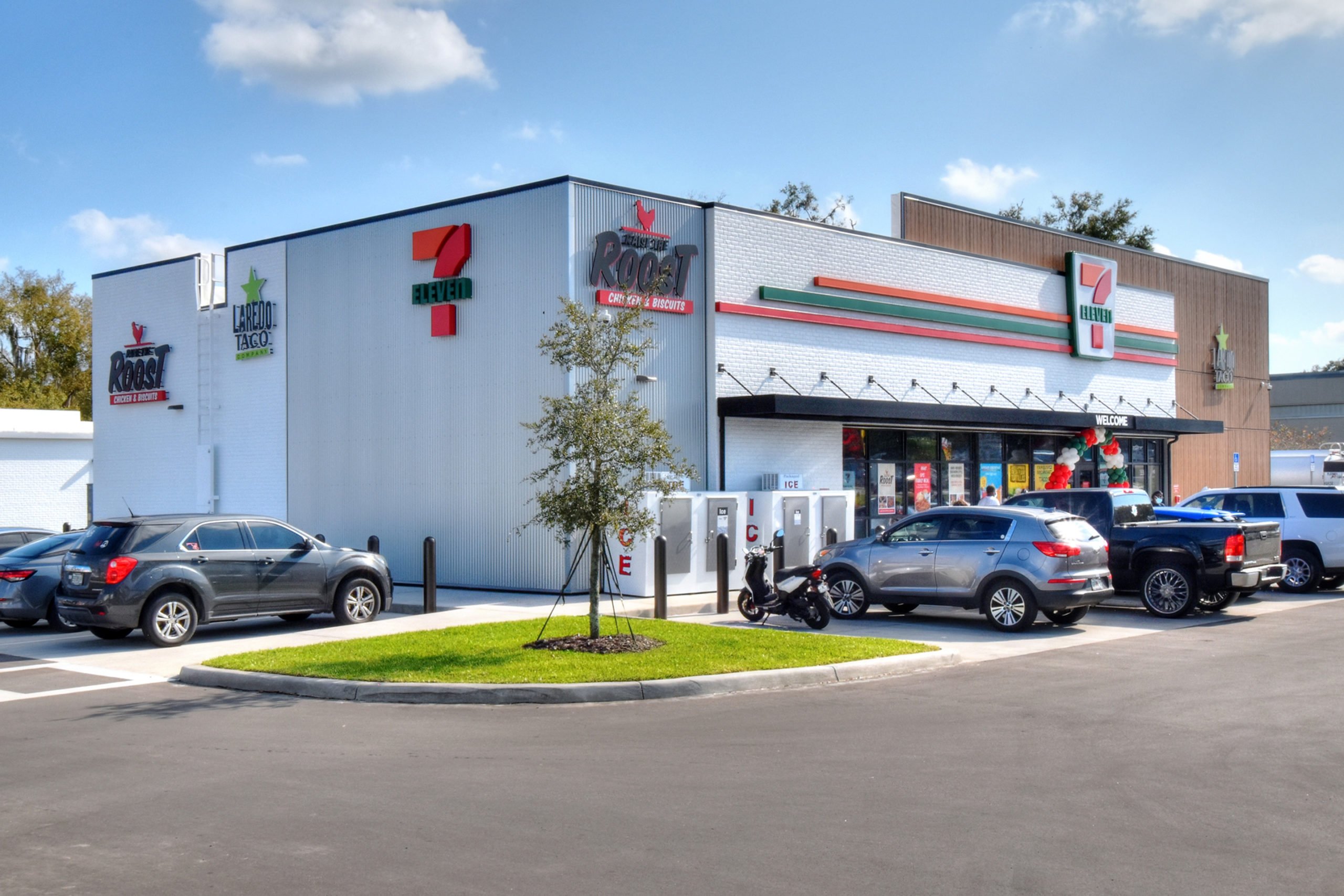 - Large Format 7-Eleven Featuring a Laredo Taco, Roost Chicken & Biscuits, and 8 MPDs